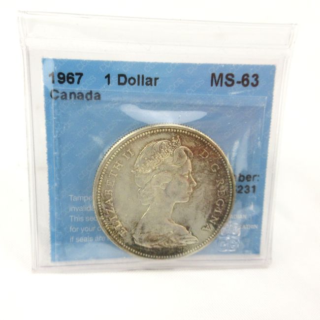 Current Bid: $29.10 [Refresh Price]YOU WILL NEED TO REFRESH THIS PAGE TO SEE UPDATED BID (Log in and this will update automatically) You must LOG IN or REGISTER to see this full page auction listing and bid. Auction is Over Winning Bid Amount: $29.10 **Lot Details: (LOT: D85) - 1967 Canada 1 Dollar coin, CCCS graded MS~63, 80 per cent silver, 23.3 g Log in to add this lot to your watch list or place a bid |
