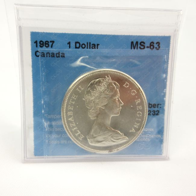 Current Bid: $29.10 [Refresh Price]YOU WILL NEED TO REFRESH THIS PAGE TO SEE UPDATED BID (Log in and this will update automatically) You must LOG IN or REGISTER to see this full page auction listing and bid. Auction is Over Winning Bid Amount: $29.10 **Lot Details: (LOT: D86) - 1967 Canada 1 Dollar coin, CCCS graded MS~63, 80 per cent silver, 23.3 g Log in to add this lot to your watch list or place a bid |