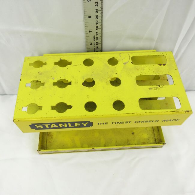 Current Bid: $23.00 [Refresh Price]YOU WILL NEED TO REFRESH THIS PAGE TO SEE UPDATED BID (Log in and this will update automatically) You must LOG IN or REGISTER to see this full page auction listing and bid. Auction is Over Winning Bid Amount: $23.00 **Lot Details: (LOT: D101) - Stanley chisel holder. Nice vintage display piece for your chisels or the workshop.These are getting increasingly difficult to come by. Log in to add this lot to your watch list or place a bid |