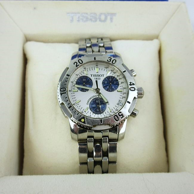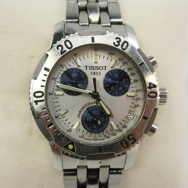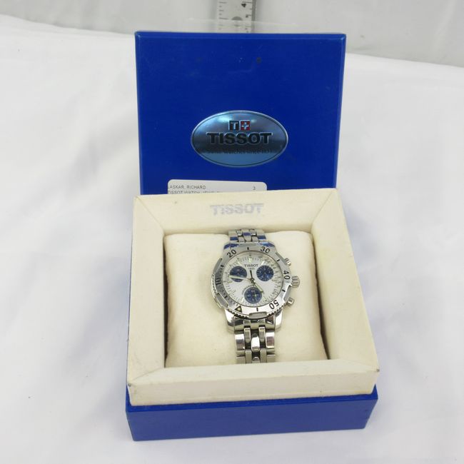Current Bid: $182.00 [Refresh Price]YOU WILL NEED TO REFRESH THIS PAGE TO SEE UPDATED BID (Log in and this will update automatically) You must LOG IN or REGISTER to see this full page auction listing and bid. Auction is Over Winning Bid Amount: $182.00 **Lot Details: (LOT: E1) - Authentic Tissot PRS Luxury chronograph Mens Divers Watch. Very lightly worn. Needs a battery but guaranteed to work and be authentic. With original box. Log in to add this lot to your watch list or place a bid |