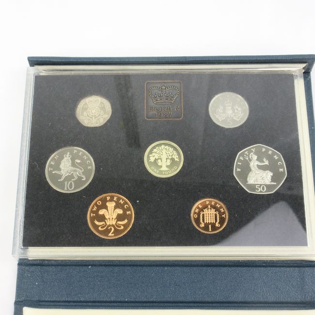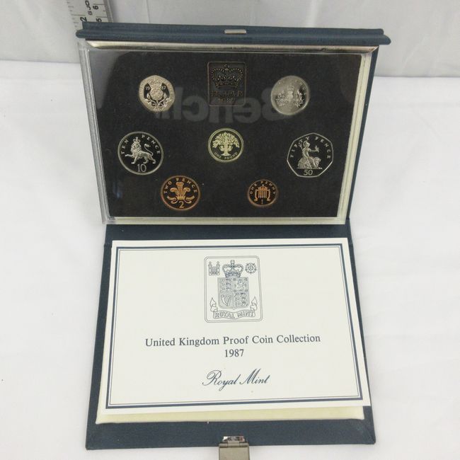 Current Bid: $28.50 [Refresh Price]YOU WILL NEED TO REFRESH THIS PAGE TO SEE UPDATED BID (Log in and this will update automatically) You must LOG IN or REGISTER to see this full page auction listing and bid. Auction is Over Winning Bid Amount: $28.50 **Lot Details: (LOT: E12) - 1987 United Kingdom proof coin set containing 7 coins issued by the United Kingdom Royal Mint. The coins are housed in a perspex case within a blue padded case which can either be stored flat, or if You prefer is hinged so that the co Log in to add this lot to your watch list or place a bid |