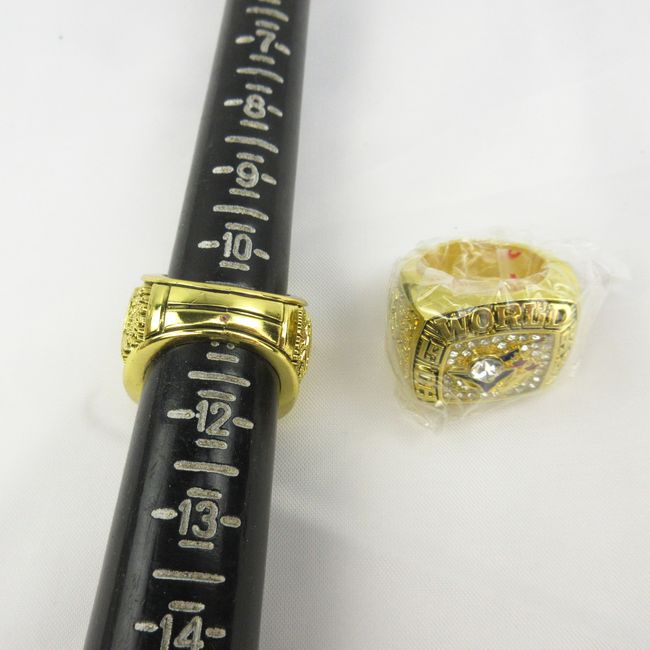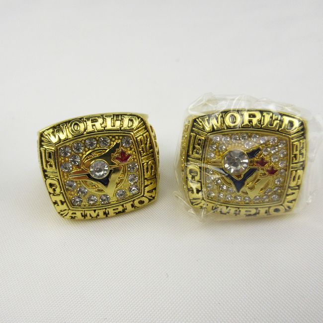 Current Bid: $94.66 [Refresh Price]YOU WILL NEED TO REFRESH THIS PAGE TO SEE UPDATED BID (Log in and this will update automatically) You must LOG IN or REGISTER to see this full page auction listing and bid. Auction is Over Winning Bid Amount: $94.66 **Lot Details: (LOT: E17) - A stunning set of 2 Blue Jays World Series Rings. Made to commemorate the Toronto Blue Jays 1992 and 1993 World Series Championships. Brand new, never worn! Extremely well Crafted. Goldtone. Approx size is 11. Log in to add this lot to your watch list or place a bid |