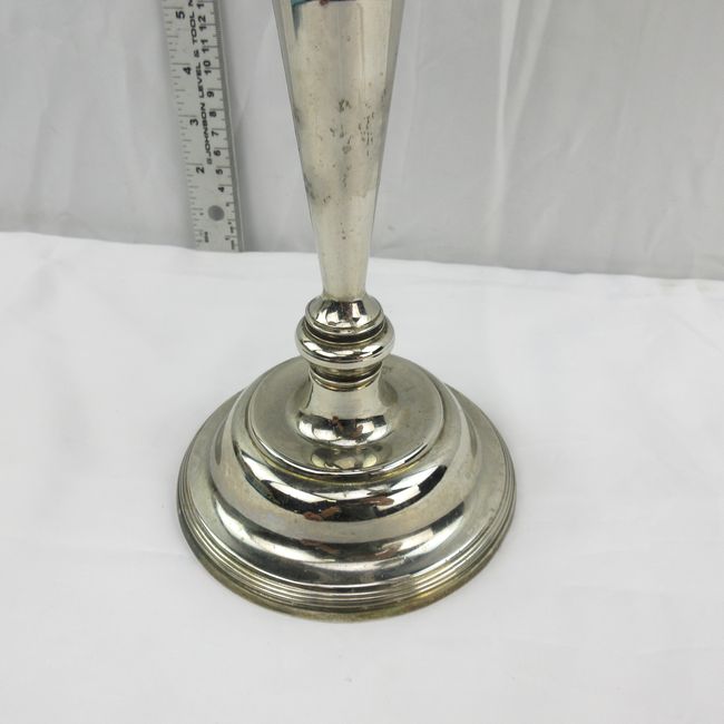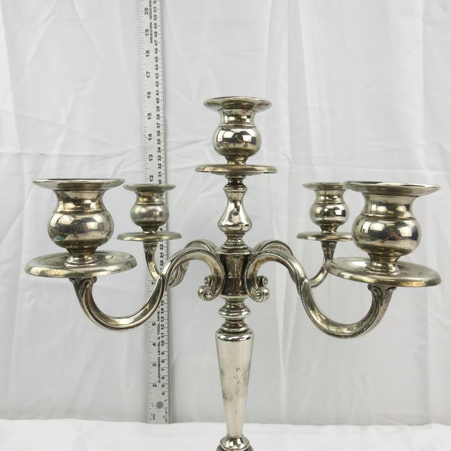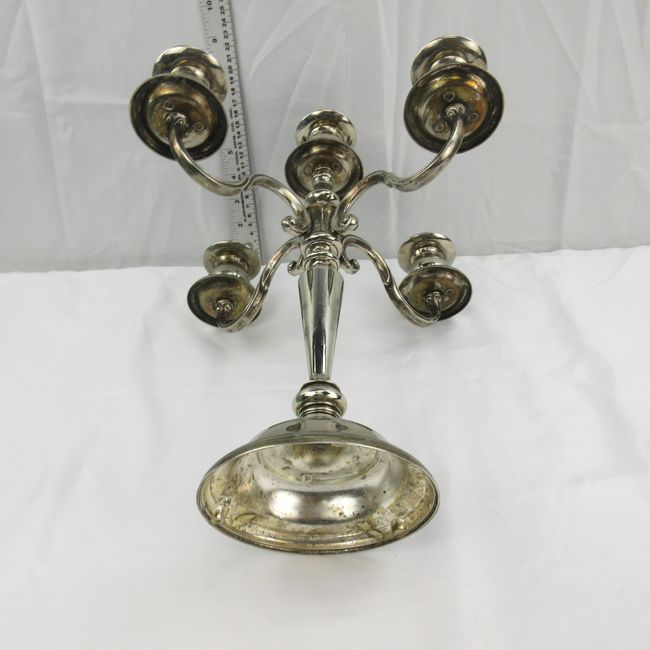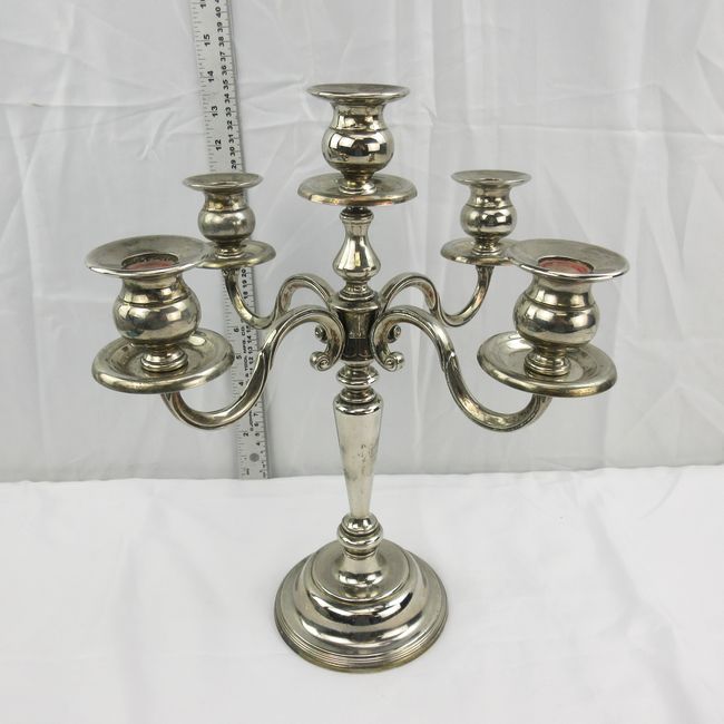 Current Bid: $47.00 [Refresh Price]YOU WILL NEED TO REFRESH THIS PAGE TO SEE UPDATED BID (Log in and this will update automatically) You must LOG IN or REGISTER to see this full page auction listing and bid. Auction is Over Winning Bid Amount: $47.00 **Lot Details: (LOT: E35) - Silver plated 5 tier candelabra candle stick. Log in to add this lot to your watch list or place a bid |