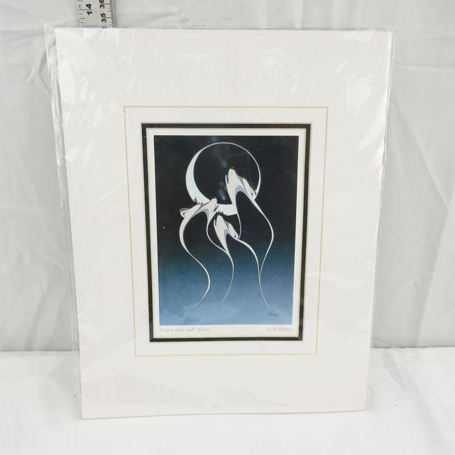 Current Bid: $8.67 [Refresh Price]YOU WILL NEED TO REFRESH THIS PAGE TO SEE UPDATED BID (Log in and this will update automatically) You must LOG IN or REGISTER to see this full page auction listing and bid. Auction is Over Winning Bid Amount: $8.67 **Lot Details: (LOT: E41) - Rick Beaver Print. Eclipse with wolf spirts. Eclipse with Wolf Spirit,, framed limited edition by artist Rick Beaver. His cultural background is Ojibway. Log in to add this lot to your watch list or place a bid |