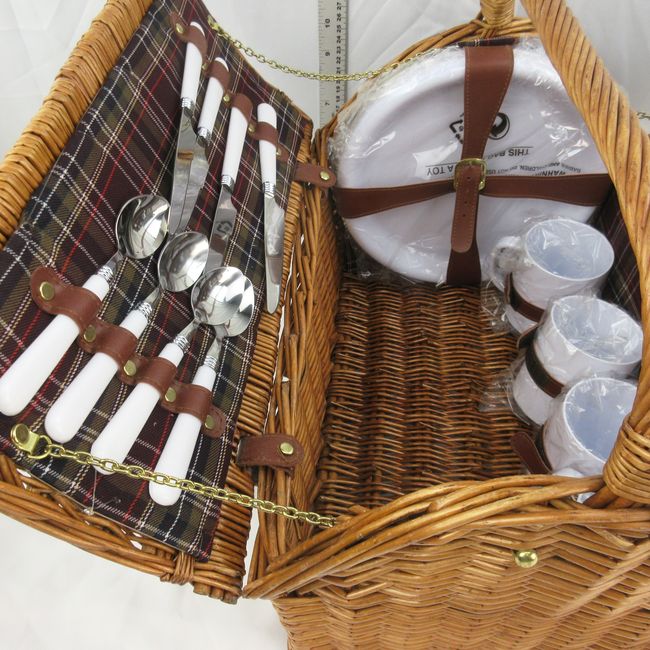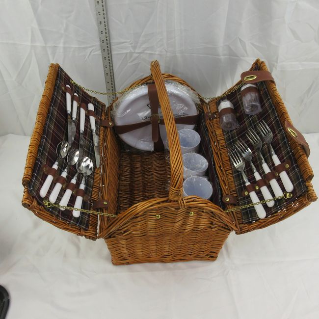 Current Bid: $16.00 [Refresh Price]YOU WILL NEED TO REFRESH THIS PAGE TO SEE UPDATED BID (Log in and this will update automatically) You must LOG IN or REGISTER to see this full page auction listing and bid. Auction is Over Winning Bid Amount: $16.00 **Lot Details: (LOT: E53) - A large picnic basket with everything that you need for a picnic for 4. New, unused. A couple of small dings to the wicker basket, otherwise as new. Log in to add this lot to your watch list or place a bid |