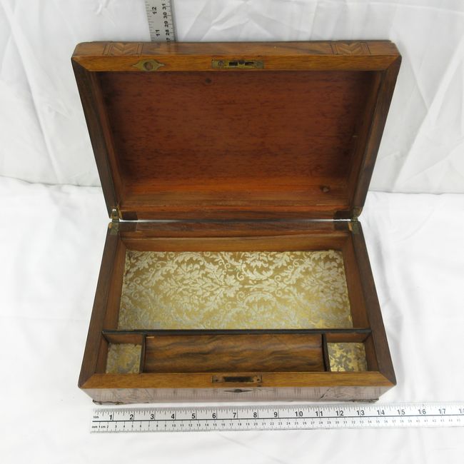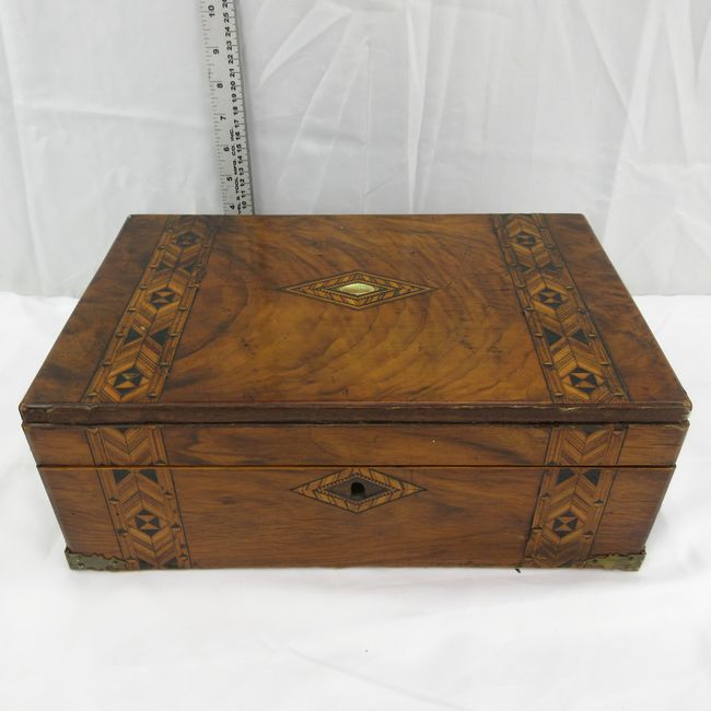 Current Bid: $27.00 [Refresh Price]YOU WILL NEED TO REFRESH THIS PAGE TO SEE UPDATED BID (Log in and this will update automatically) You must LOG IN or REGISTER to see this full page auction listing and bid. Auction is Over Winning Bid Amount: $27.00 **Lot Details: (LOT: E63) - An antique Victorian wood inlay writing box. Beautiful grain of wood on the top of the box. Some damage and has no key, but still a cool piece. As found. Log in to add this lot to your watch list or place a bid |