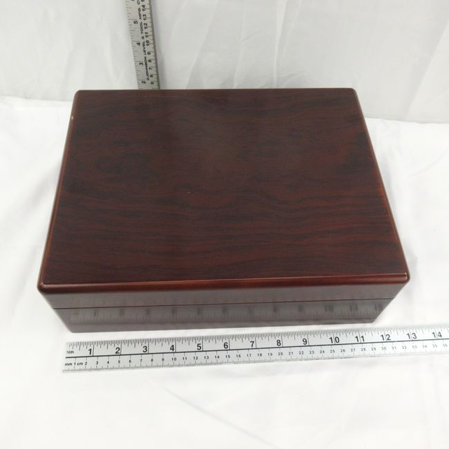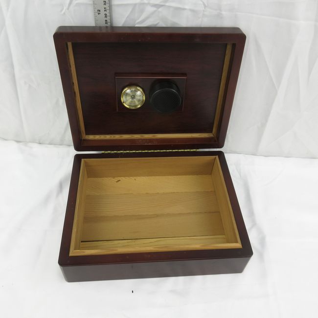 Current Bid: $11.88 [Refresh Price]YOU WILL NEED TO REFRESH THIS PAGE TO SEE UPDATED BID (Log in and this will update automatically) You must LOG IN or REGISTER to see this full page auction listing and bid. Auction is Over Winning Bid Amount: $11.88 **Lot Details: (LOT: E64) - A very nice humidor for cigars with hygrometer. Very good condition, inside is clean, outside only has a couple of scuffs to the egge of the case. Log in to add this lot to your watch list or place a bid |