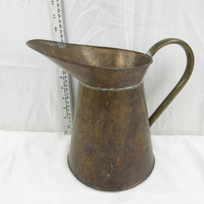 Current Bid: $17.50 [Refresh Price]YOU WILL NEED TO REFRESH THIS PAGE TO SEE UPDATED BID (Log in and this will update automatically) You must LOG IN or REGISTER to see this full page auction listing and bid. Auction is Over Winning Bid Amount: $17.50 **Lot Details: (LOT: E79) - A handmade copper water jug, solid copper. It holds water fine. A great decor piece measures 11 1/2 inches tall by 12 inches across including the handle. Log in to add this lot to your watch list or place a bid |