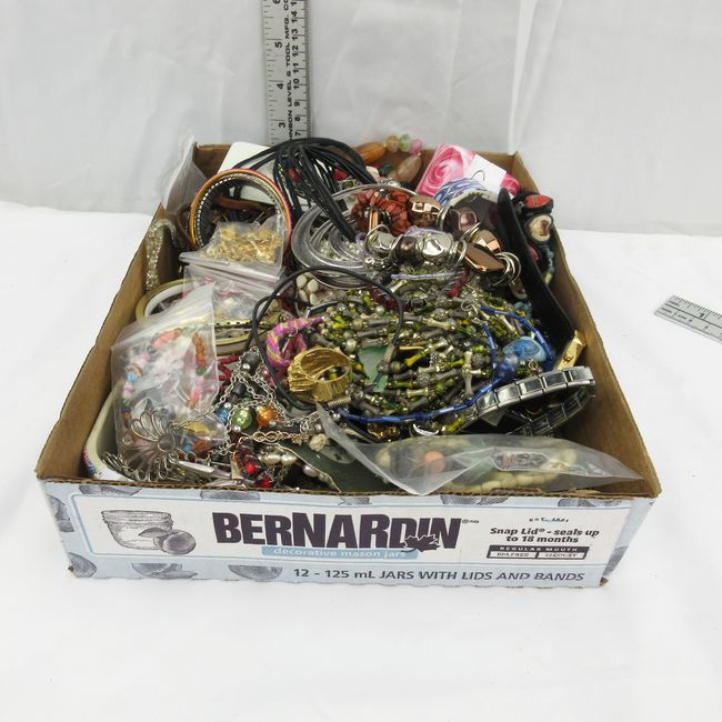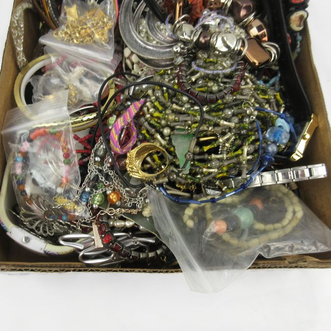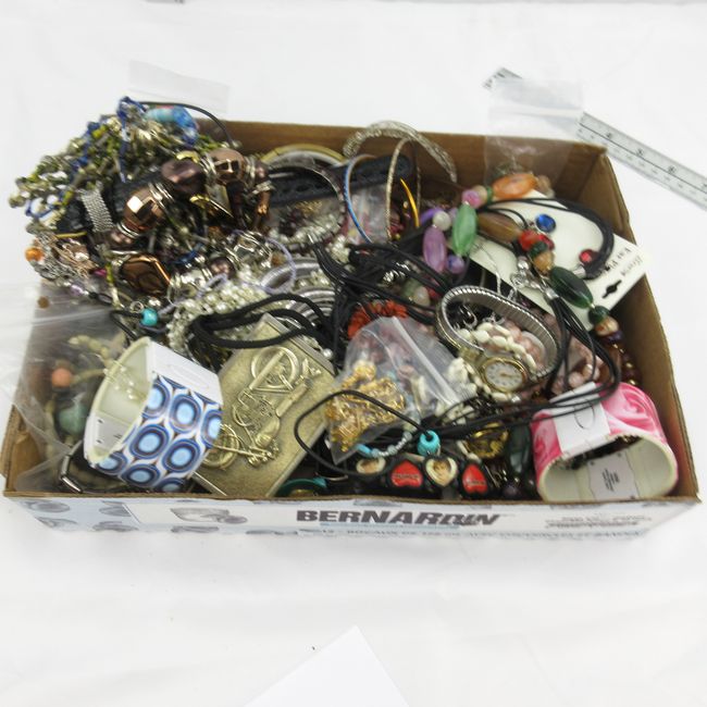 Current Bid: $77.00 [Refresh Price]YOU WILL NEED TO REFRESH THIS PAGE TO SEE UPDATED BID (Log in and this will update automatically) You must LOG IN or REGISTER to see this full page auction listing and bid. Auction is Over Winning Bid Amount: $77.00 **Lot Details: (LOT: E96) - Just over 4 pounds of mixed Jewelry, including rings, necklaces, watches, and bracelets all wearable pieces. Log in to add this lot to your watch list or place a bid |