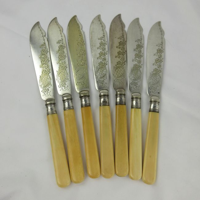 Current Bid: $14.00 [Refresh Price]YOU WILL NEED TO REFRESH THIS PAGE TO SEE UPDATED BID (Log in and this will update automatically) You must LOG IN or REGISTER to see this full page auction listing and bid. Auction is Over Winning Bid Amount: $14.00 **Lot Details: (LOT: E98) - Beautiful set of 7 knives and 7 forks all stamped on back of each piece. Log in to add this lot to your watch list or place a bid |