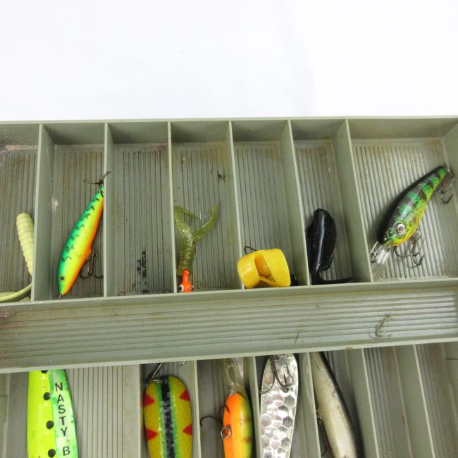 Current Bid: $15.00 [Refresh Price]YOU WILL NEED TO REFRESH THIS PAGE TO SEE UPDATED BID (Log in and this will update automatically) You must LOG IN or REGISTER to see this full page auction listing and bid. Auction is Over Winning Bid Amount: $15.00 **Lot Details: (LOT: E115) - A tackles box with some quality lures in it, tackle box opens up and has two teers if storage slots that open b fishing season is right around the corner Log in to add this lot to your watch list or place a bid |