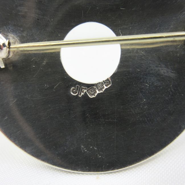 Current Bid: $23.16 [Refresh Price]YOU WILL NEED TO REFRESH THIS PAGE TO SEE UPDATED BID (Log in and this will update automatically) You must LOG IN or REGISTER to see this full page auction listing and bid. Auction is Over Winning Bid Amount: $23.16 **Lot Details: (LOT: E119) - Signed Sterling JF John Fraser hallmarks Scotland Brooch, 21 Gram, hallmarks represent Edinburgh Scotland, deep raised designed, Verified Sterling Log in to add this lot to your watch list or place a bid |