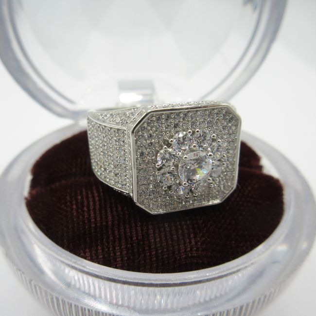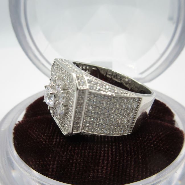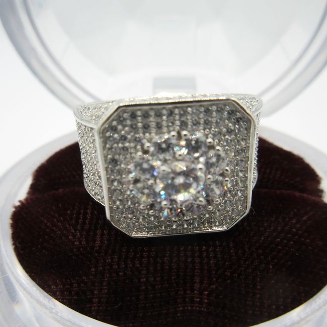 Current Bid: $70.44 [Refresh Price]YOU WILL NEED TO REFRESH THIS PAGE TO SEE UPDATED BID (Log in and this will update automatically) You must LOG IN or REGISTER to see this full page auction listing and bid. Auction is Over Winning Bid Amount: $70.44 **Lot Details: (LOT: E120) - Sterling Gentlemen`s Statement CZ Paved Ring 10 Grams, fully paved jewelled raised design, size 11 1/2+ (re wide band bottom), Verified Sterling, New never used in presentation box Fathers Day around the Corner Log in to add this lot to your watch list or place a bid |