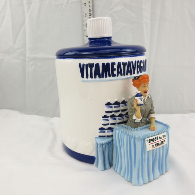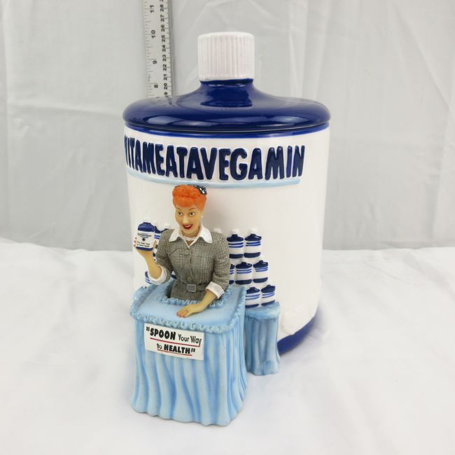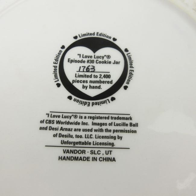 Current Bid: $38.00 [Refresh Price]YOU WILL NEED TO REFRESH THIS PAGE TO SEE UPDATED BID (Log in and this will update automatically) You must LOG IN or REGISTER to see this full page auction listing and bid. Auction is Over Winning Bid Amount: $38.00 **Lot Details: (LOT: E129) - Genuine Limited Edition ``I Love Lucy`` Vitameatavegamin Cookie Jar Serial #1763 limited to 2400 pieces numbered by Hand licensed by CBS Worldwide Inc. for this ceramic and porcelain cookie, snacks Cookie Jar as seen in Episode #30 of Log in to add this lot to your watch list or place a bid |