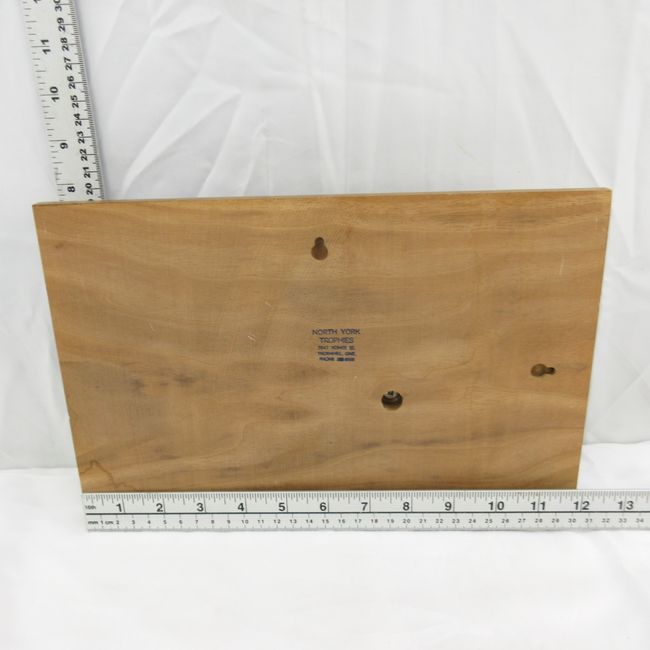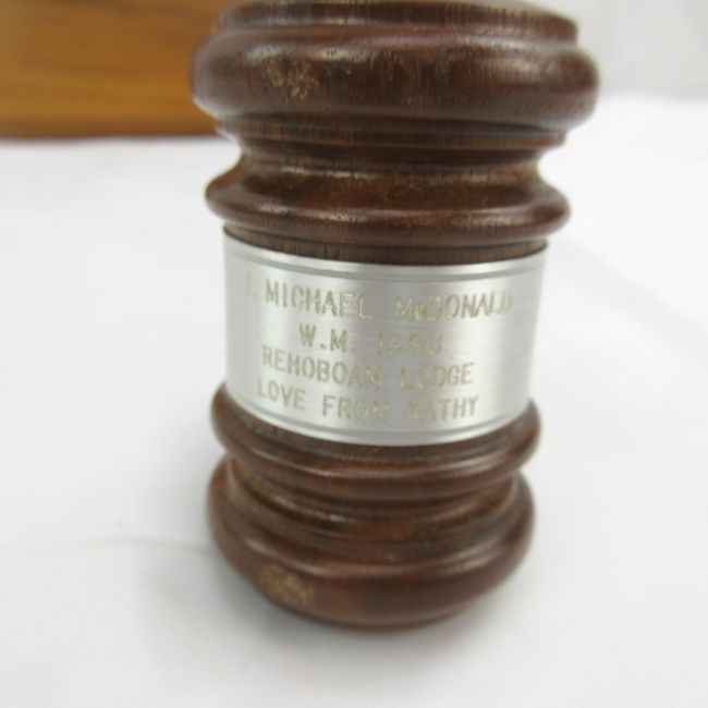 Current Bid: $7.00 [Refresh Price]YOU WILL NEED TO REFRESH THIS PAGE TO SEE UPDATED BID (Log in and this will update automatically) You must LOG IN or REGISTER to see this full page auction listing and bid. Auction is Over Winning Bid Amount: $7.00 **Lot Details: (LOT: E130) - Vintage Wood Mason Masonic Trophy Wall Hammer Wall Plaque with a silver monogrammed band, easily removed or buffed out, 12`` wide x 8`` high, professionally made by North York Trophies years ago stamped on rear with a telephone number Log in to add this lot to your watch list or place a bid |