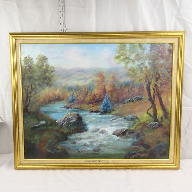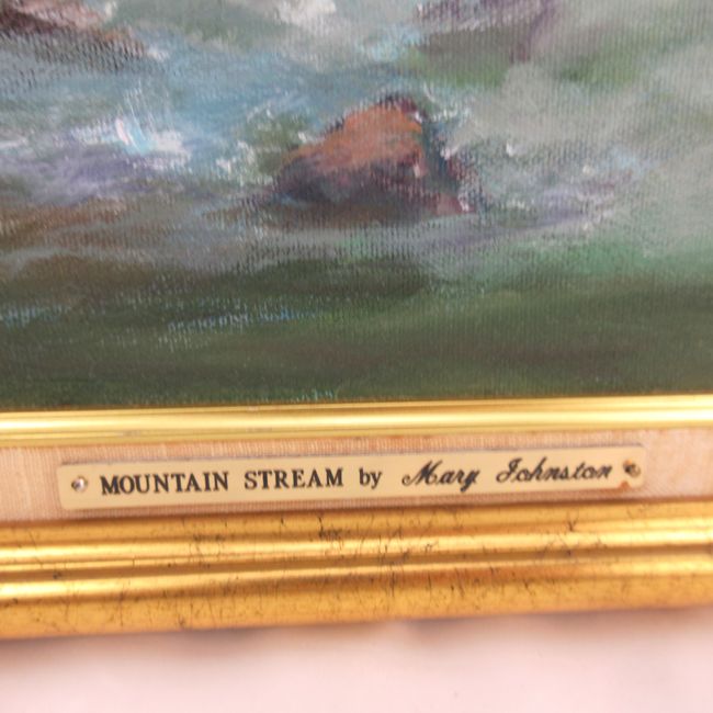 Current Bid: $11.99 [Refresh Price]YOU WILL NEED TO REFRESH THIS PAGE TO SEE UPDATED BID (Log in and this will update automatically) You must LOG IN or REGISTER to see this full page auction listing and bid. Auction is Over Winning Bid Amount: $11.99 **Lot Details: (LOT: E132) - Signed Mary Johnston Mountain Stream Oil Painting On Canvas, framed 25 3/4`` high x 31 3/4`` wide Log in to add this lot to your watch list or place a bid |
