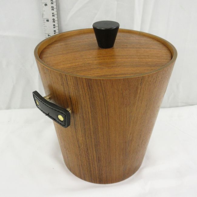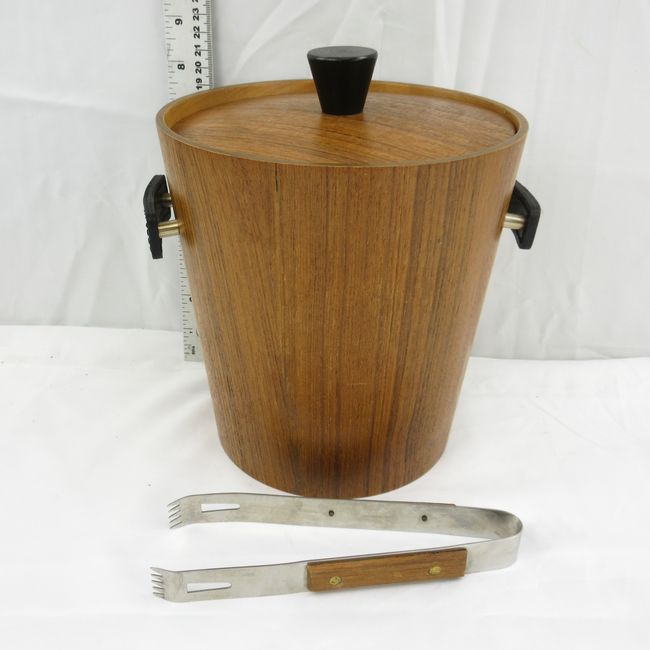 Current Bid: $46.00 [Refresh Price]YOU WILL NEED TO REFRESH THIS PAGE TO SEE UPDATED BID (Log in and this will update automatically) You must LOG IN or REGISTER to see this full page auction listing and bid. Auction is Over Winning Bid Amount: $46.00 **Lot Details: (LOT: E186) - MCM Retro TEAK Ice Bucket w Handles and pair ice prongs not original pair, 7 1/4`` round x 9 1/4`` high including knob, (with no knob it is 7 1/2`` high) Log in to add this lot to your watch list or place a bid |
