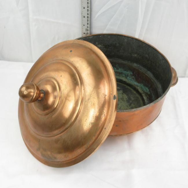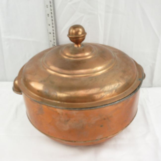 Current Bid: $9.00 [Refresh Price]YOU WILL NEED TO REFRESH THIS PAGE TO SEE UPDATED BID (Log in and this will update automatically) You must LOG IN or REGISTER to see this full page auction listing and bid. Auction is Over Winning Bid Amount: $9.00 **Lot Details: (LOT: E187) - Beautiful Antique Copper handmade pot with lid. Has a small hole in the bottom. Not sure what it was used for but believe it came from Europe in the late 1800s. Log in to add this lot to your watch list or place a bid |