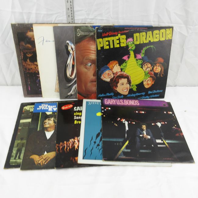 Current Bid: $11.00 [Refresh Price]YOU WILL NEED TO REFRESH THIS PAGE TO SEE UPDATED BID (Log in and this will update automatically) You must LOG IN or REGISTER to see this full page auction listing and bid. Auction is Over Winning Bid Amount: $11.00 **Lot Details: (LOT: E209) - 10 vintage records. Jackson. Brownie, Jennifer Warnes, Jackson brownie, runner, woody Woodbury, Pete`s dragon, Creedence Clearwater, Everly Brothers, Sarah Vaughan and more. Log in to add this lot to your watch list or place a bid |