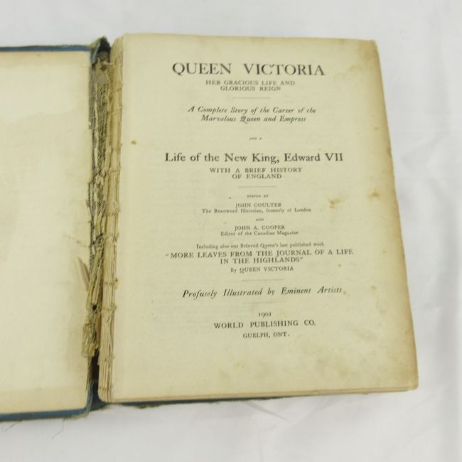 Current Bid: $9.00 [Refresh Price]YOU WILL NEED TO REFRESH THIS PAGE TO SEE UPDATED BID (Log in and this will update automatically) You must LOG IN or REGISTER to see this full page auction listing and bid. Auction is Over Winning Bid Amount: $9.00 **Lot Details: (LOT: E212) - A truly spectacular book, it`s in a little rough shape but not bad considering its 124 years old. Queen Victoria her grand life and glorious reign including a brief history of England published 1901. Log in to add this lot to your watch list or place a bid |
