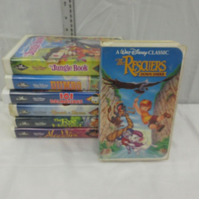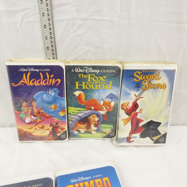 Current Bid: $7.00 [Refresh Price]YOU WILL NEED TO REFRESH THIS PAGE TO SEE UPDATED BID (Log in and this will update automatically) You must LOG IN or REGISTER to see this full page auction listing and bid. Auction is Over Winning Bid Amount: $7.00 **Lot Details: (LOT: E214) - 7 black diamond VHS, these are very rare and actually sell for crazy amounts on eBay look them up. They have a black diamond on the side of the movie case. They are special releases from Disney and hard to find. Sword and the stone Log in to add this lot to your watch list or place a bid |