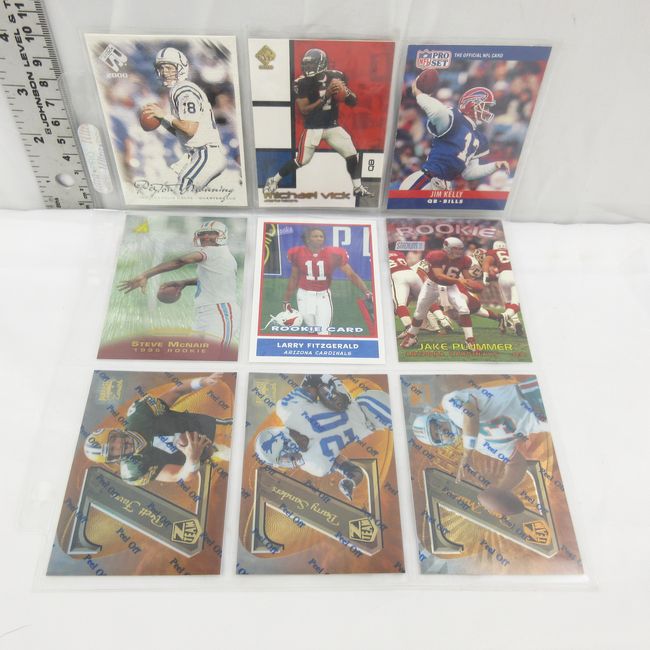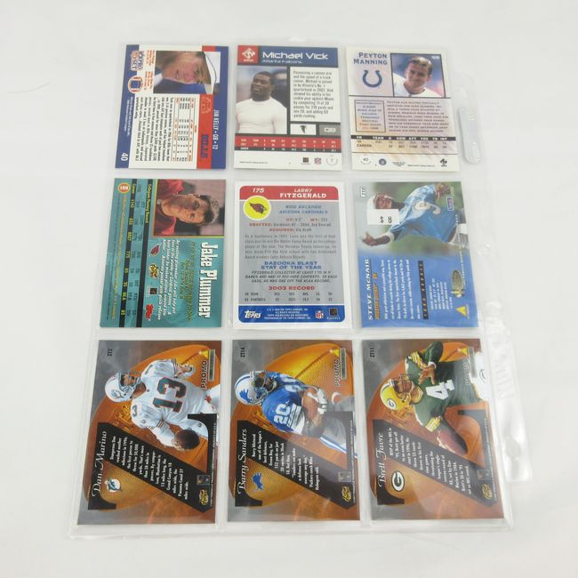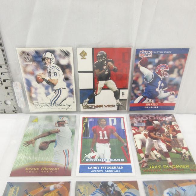 Current Bid: $5.00 [Refresh Price]YOU WILL NEED TO REFRESH THIS PAGE TO SEE UPDATED BID (Log in and this will update automatically) You must LOG IN or REGISTER to see this full page auction listing and bid. Auction is Over Winning Bid Amount: $5.00 **Lot Details: (LOT: E235) - 7 great NFL quarterbacks incl Manning, Vick, and Favre Also one rc of Fitzgerald Log in to add this lot to your watch list or place a bid |