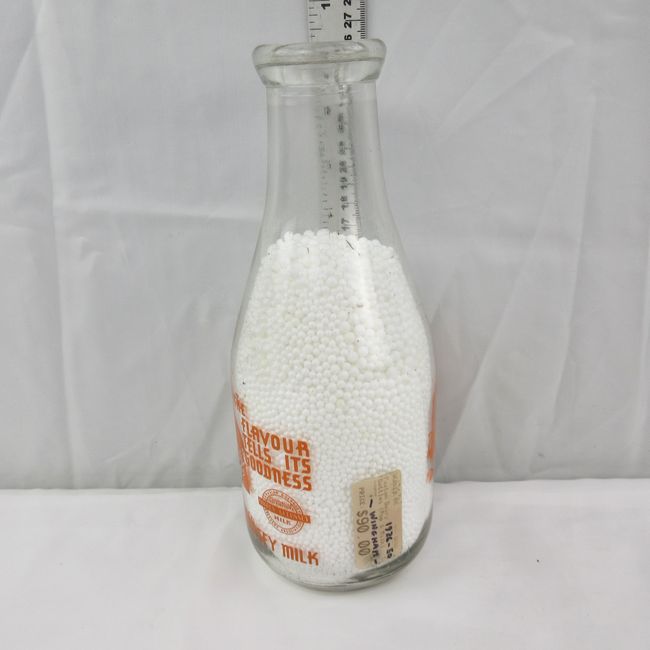 Current Bid: $7.00 [Refresh Price]YOU WILL NEED TO REFRESH THIS PAGE TO SEE UPDATED BID (Log in and this will update automatically) You must LOG IN or REGISTER to see this full page auction listing and bid. Auction is Over Winning Bid Amount: $7.00 **Lot Details: (LOT: E263) - Foxton Dairy Bottle. Pyro Print in Orange. 1940s/50s era. Child drinking milk on back with the bottle people. Great display bottle. Log in to add this lot to your watch list or place a bid |