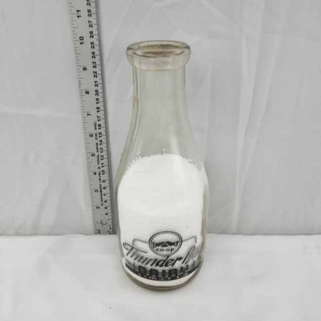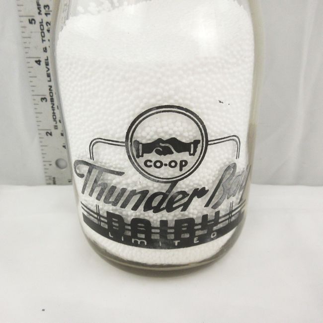 Current Bid: $11.00 [Refresh Price]YOU WILL NEED TO REFRESH THIS PAGE TO SEE UPDATED BID (Log in and this will update automatically) You must LOG IN or REGISTER to see this full page auction listing and bid. Auction is Over Winning Bid Amount: $11.00 **Lot Details: (LOT: E269) - Thunder Bay Dairy Bottle from the 1950s with black print on front and back. This one is a little warn but still displays well Log in to add this lot to your watch list or place a bid |