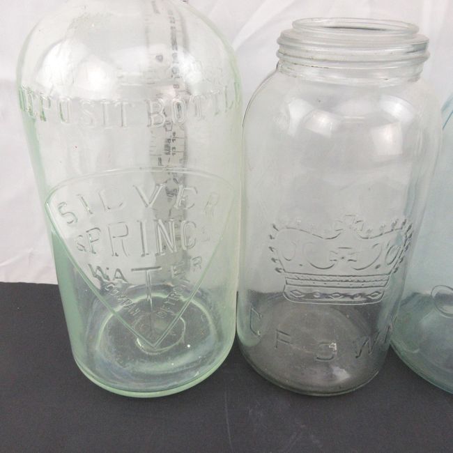 Current Bid: $7.00 [Refresh Price]YOU WILL NEED TO REFRESH THIS PAGE TO SEE UPDATED BID (Log in and this will update automatically) You must LOG IN or REGISTER to see this full page auction listing and bid. Auction is Over Winning Bid Amount: $7.00 **Lot Details: (LOT: E275) - Sealer Jars Lot and a Silver Spring water bottle as well. All pre war bottles and jars except for the coffee jar thats probably 1950s. The small crown has a chipped rim Log in to add this lot to your watch list or place a bid |