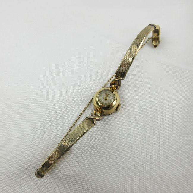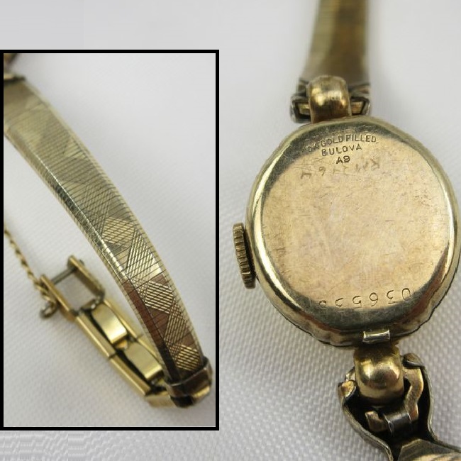 Current Bid: $27.00 [Refresh Price]YOU WILL NEED TO REFRESH THIS PAGE TO SEE UPDATED BID (Log in and this will update automatically) You must LOG IN or REGISTER to see this full page auction listing and bid. Auction is Over Winning Bid Amount: $27.00 **Lot Details: (LOT: F1) - Bulova 1940’s Ladies 10K Yellow Gold Filled W atch. You won’t Find a More Interesting Watch! Maintains Original Band and Safety Chain. Runs Well and is in Overall Excellent Condition. Log in to add this lot to your watch list or place a bid |