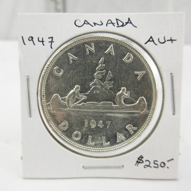 Current Bid: $233.01 [Refresh Price]YOU WILL NEED TO REFRESH THIS PAGE TO SEE UPDATED BID (Log in and this will update automatically) You must LOG IN or REGISTER to see this full page auction listing and bid. Auction is Over Winning Bid Amount: $233.01 **Lot Details: (LOT: F9) - Canada 1947 Silver Dollar. Gorgeous, Key Date, Canadian Silver Dollar, an Asset to any Collection. Should be Certified. Log in to add this lot to your watch list or place a bid |