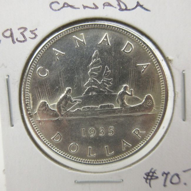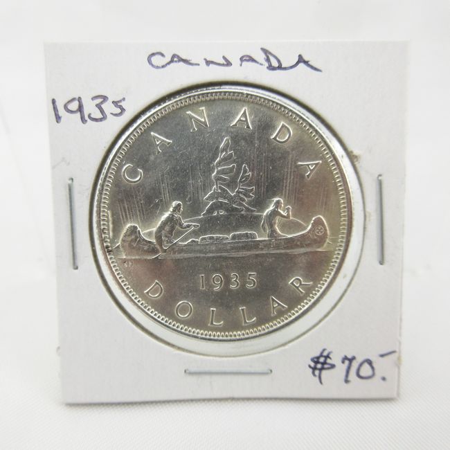 Current Bid: $46.10 [Refresh Price]YOU WILL NEED TO REFRESH THIS PAGE TO SEE UPDATED BID (Log in and this will update automatically) You must LOG IN or REGISTER to see this full page auction listing and bid. Auction is Over Winning Bid Amount: $46.10 **Lot Details: (LOT: F12) - Canada 1935 Silver Dollar in Beautiful Condition. Gorgeous Example King George V Coinage on Canada’s First Silver Dollar. Log in to add this lot to your watch list or place a bid |
