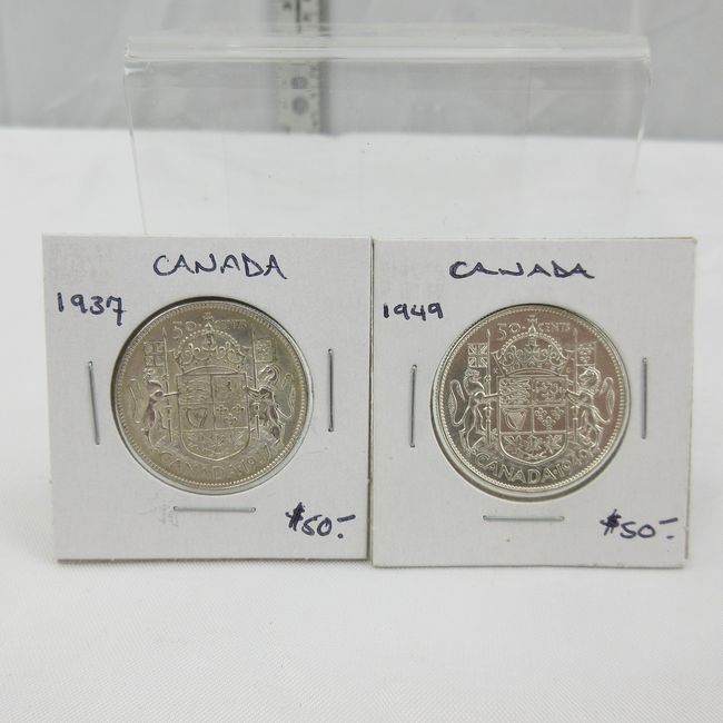 Current Bid: $37.55 [Refresh Price]YOU WILL NEED TO REFRESH THIS PAGE TO SEE UPDATED BID (Log in and this will update automatically) You must LOG IN or REGISTER to see this full page auction listing and bid. Auction is Over Winning Bid Amount: $37.55 **Lot Details: (LOT: F14) - Canada 1937 and 1949 Silver Half Dollars. Both Coins in Gorgeous Condition, Ready for Certification. Log in to add this lot to your watch list or place a bid |