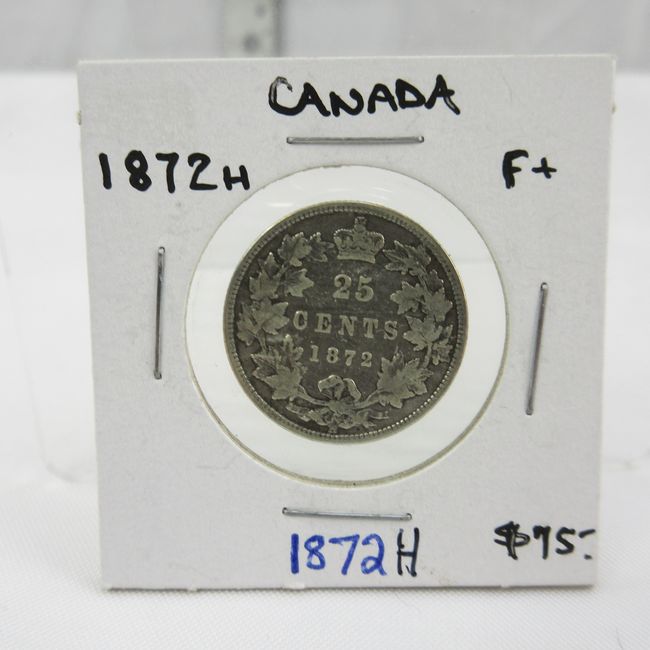 Current Bid: $29.30 [Refresh Price]YOU WILL NEED TO REFRESH THIS PAGE TO SEE UPDATED BID (Log in and this will update automatically) You must LOG IN or REGISTER to see this full page auction listing and bid. Auction is Over Winning Bid Amount: $29.30 **Lot Details: (LOT: F17) - Canada 1872H Silver Quarter. Strong, Early Victorian .925 Quarter in Beautiful Collectible Condition. Log in to add this lot to your watch list or place a bid |