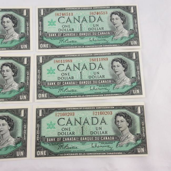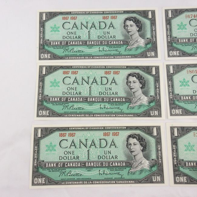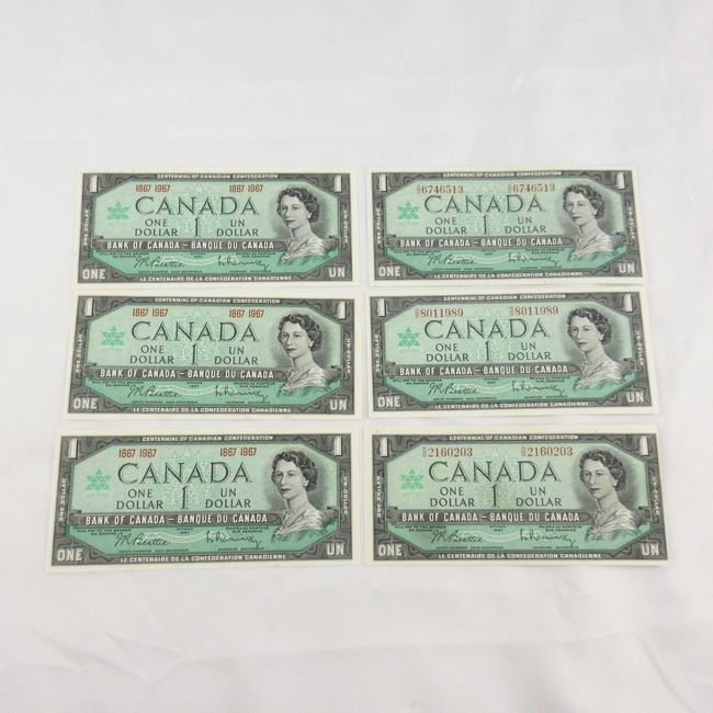 Current Bid: $41.00 [Refresh Price]YOU WILL NEED TO REFRESH THIS PAGE TO SEE UPDATED BID (Log in and this will update automatically) You must LOG IN or REGISTER to see this full page auction listing and bid. Auction is Over Winning Bid Amount: $41.00 **Lot Details: (LOT: F21) - Canada 1967, Lot of Six Banknotes. Three Difficult Serialized Centennial Banknotes . and Three 1867/1967 Banknotes. All Six 1967 Banknotes are GEM/Mint From Original Bricks. Log in to add this lot to your watch list or place a bid |