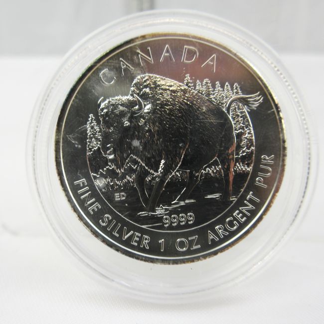 Current Bid: $57.10 [Refresh Price]YOU WILL NEED TO REFRESH THIS PAGE TO SEE UPDATED BID (Log in and this will update automatically) You must LOG IN or REGISTER to see this full page auction listing and bid. Auction is Over Winning Bid Amount: $57.10 **Lot Details: (LOT: F23) - Canada 2013 Silver Maple Leaf Coin. This .9999 Pure Silve Coin Celebrates the Wood Bison (Buffalo). Mint in Capsule. Log in to add this lot to your watch list or place a bid |