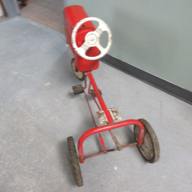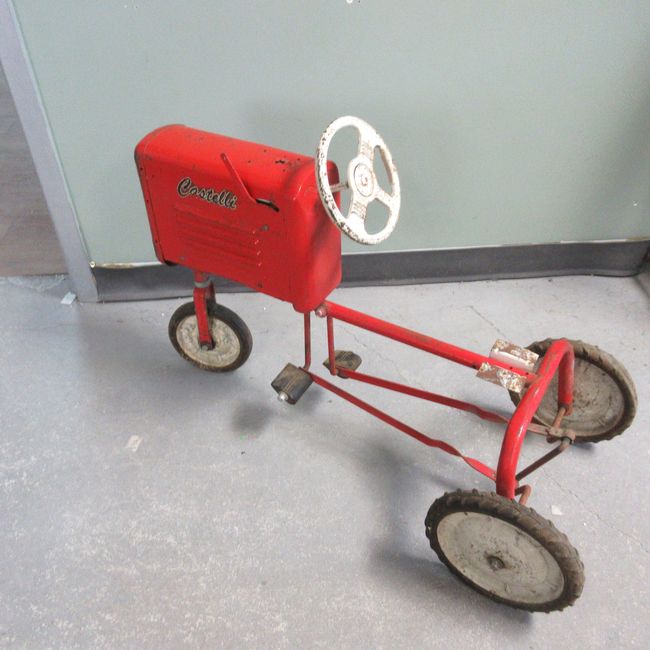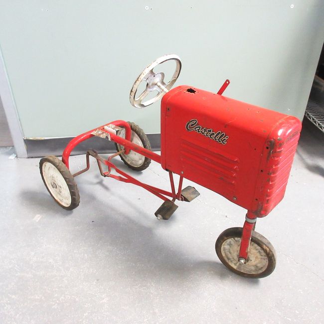 Current Bid: $40.10 [Refresh Price]YOU WILL NEED TO REFRESH THIS PAGE TO SEE UPDATED BID (Log in and this will update automatically) You must LOG IN or REGISTER to see this full page auction listing and bid. Auction is Over Winning Bid Amount: $40.10 **Lot Details: (LOT: F32) - Another Castelli Pedal Tractor with white wheels-1954-missing seat-29 inches long and 2 ft high-good pedals Log in to add this lot to your watch list or place a bid |