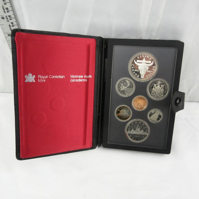 Current Bid: $25.00 [Refresh Price]YOU WILL NEED TO REFRESH THIS PAGE TO SEE UPDATED BID (Log in and this will update automatically) You must LOG IN or REGISTER to see this full page auction listing and bid. Auction is Over Winning Bid Amount: $25.00 **Lot Details: (LOT: F48) - Royal Canadian Mint 1982 double dollar coin set W/Regina Centennial .500 Silver dollar. Log in to add this lot to your watch list or place a bid |