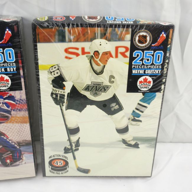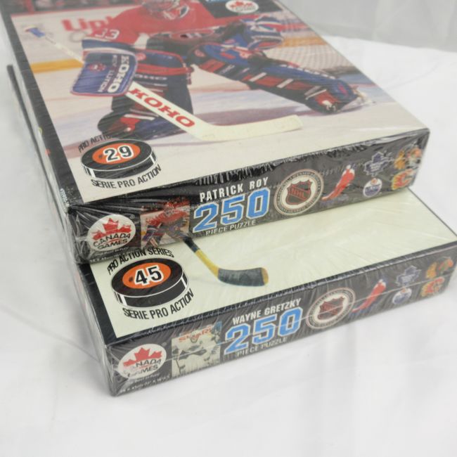 Current Bid: $11.00 [Refresh Price]YOU WILL NEED TO REFRESH THIS PAGE TO SEE UPDATED BID (Log in and this will update automatically) You must LOG IN or REGISTER to see this full page auction listing and bid. Auction is Over Winning Bid Amount: $11.00 **Lot Details: (LOT: F54) - Lot of 2 vintage NHL Superstar 250pc jigsaw puzzles both still new & sealed. Featuring The Great One Wayne Gretzky & Patrick Roy. Approx 11" x 16" each. Log in to add this lot to your watch list or place a bid |