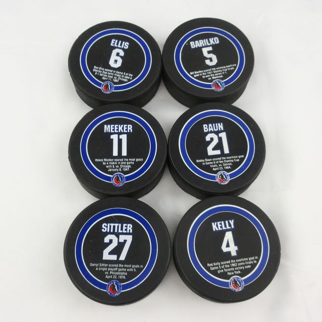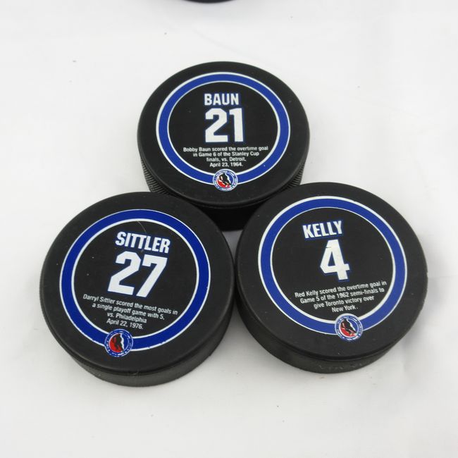 Current Bid: $9.00 [Refresh Price]YOU WILL NEED TO REFRESH THIS PAGE TO SEE UPDATED BID (Log in and this will update automatically) You must LOG IN or REGISTER to see this full page auction listing and bid. Auction is Over Winning Bid Amount: $9.00 **Lot Details: (LOT: F57) - Toronto Maple Leafs All Time Greats puck set w/ Sittler, Barilko, Kelly, Baun,Meeker, and Ellis. Great shape. Log in to add this lot to your watch list or place a bid |