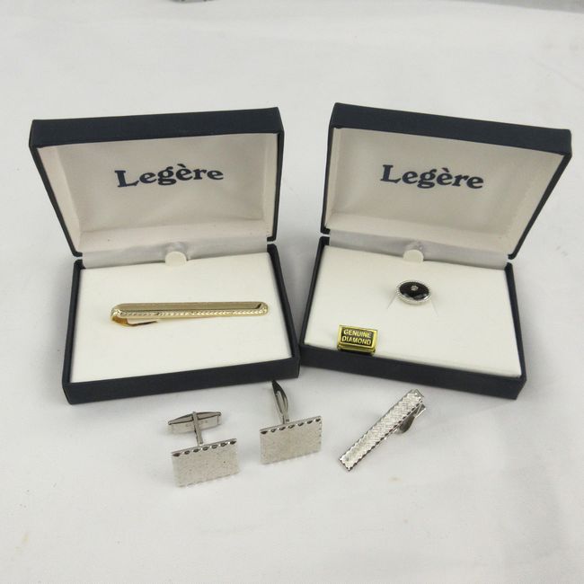 Current Bid: $9.44 [Refresh Price]YOU WILL NEED TO REFRESH THIS PAGE TO SEE UPDATED BID (Log in and this will update automatically) You must LOG IN or REGISTER to see this full page auction listing and bid. Auction is Over Winning Bid Amount: $9.44 **Lot Details: (LOT: F97) - Mens Lefarge tie clip, tie pin with a real diamond in the centre of it and a pair of cuff links. Log in to add this lot to your watch list or place a bid |