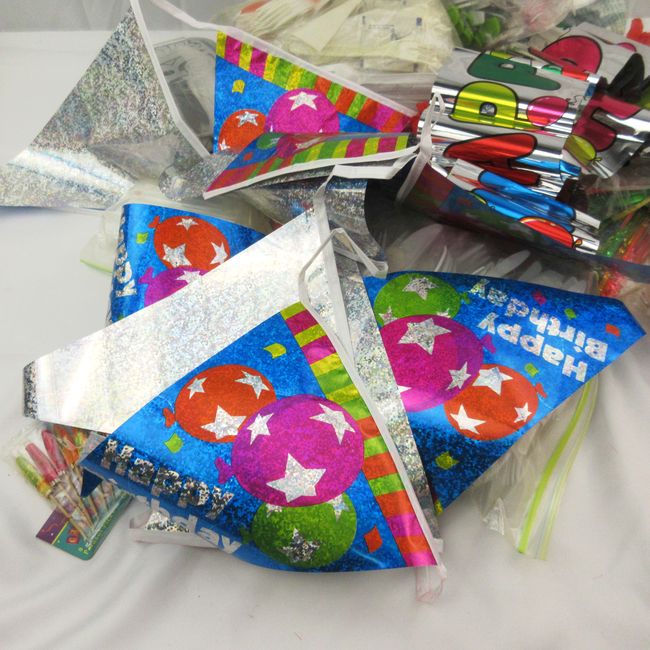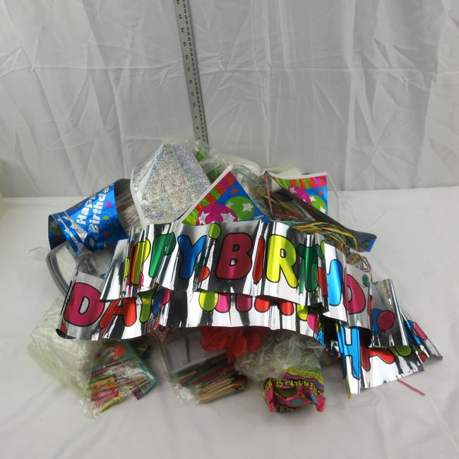 Current Bid: $5.00 [Refresh Price]YOU WILL NEED TO REFRESH THIS PAGE TO SEE UPDATED BID (Log in and this will update automatically) You must LOG IN or REGISTER to see this full page auction listing and bid. Auction is Over Winning Bid Amount: $5.00 **Lot Details: (LOT: F116) - Tons of Party Supplies, multiply Happy Birthday sports style banner flags, candles, h'orderves forks, drink umbrellas, drink stirrers, hula skirt, hula necklace, party noise makers, Also another full bag of plasti... Log in to add this lot to your watch list or place a bid |