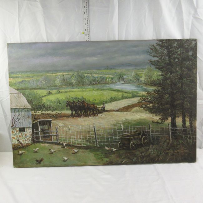 Current Bid: $81.00 [Refresh Price]YOU WILL NEED TO REFRESH THIS PAGE TO SEE UPDATED BID (Log in and this will update automatically) You must LOG IN or REGISTER to see this full page auction listing and bid. Auction is Over Winning Bid Amount: $81.00 **Lot Details: (LOT: F126) - Excellent Workmanship Oil on Canvas Painting, signed but I can't make it out, very well done piece, 36" (l) x 24 1/2" (h) x 3/4" (w). Log in to add this lot to your watch list or place a bid |