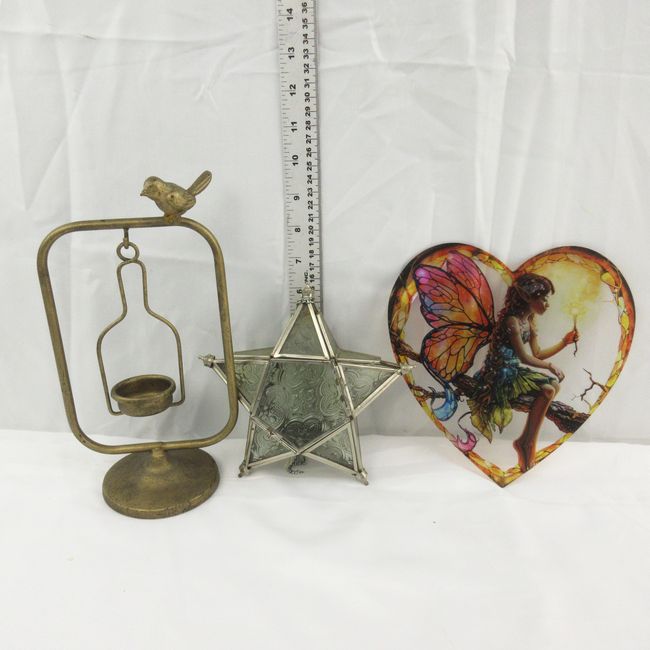 Current Bid: $7.00 [Refresh Price]YOU WILL NEED TO REFRESH THIS PAGE TO SEE UPDATED BID (Log in and this will update automatically) You must LOG IN or REGISTER to see this full page auction listing and bid. Auction is Over Winning Bid Amount: $7.00 **Lot Details: (LOT: F129) - Two vintage candle holders. A starlight lantern metal and glass one and a solid brass one. A heart shaped fairy dream catcher made of acrylic material Log in to add this lot to your watch list or place a bid |