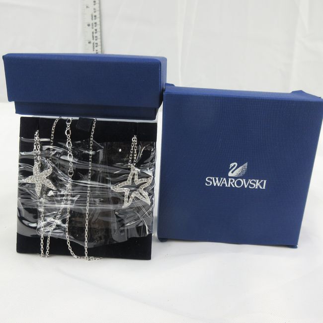 Current Bid: $18.00 [Refresh Price]YOU WILL NEED TO REFRESH THIS PAGE TO SEE UPDATED BID (Log in and this will update automatically) You must LOG IN or REGISTER to see this full page auction listing and bid. Auction is Over Winning Bid Amount: $18.00 **Lot Details: (LOT: F160) - Swarovski Crystal Holly Starfish double pendant, 692862. Two starfish in clear crystal pave hang gracefully from a rhodium~ plated chain with lobster closure. New in box. Log in to add this lot to your watch list or place a bid |