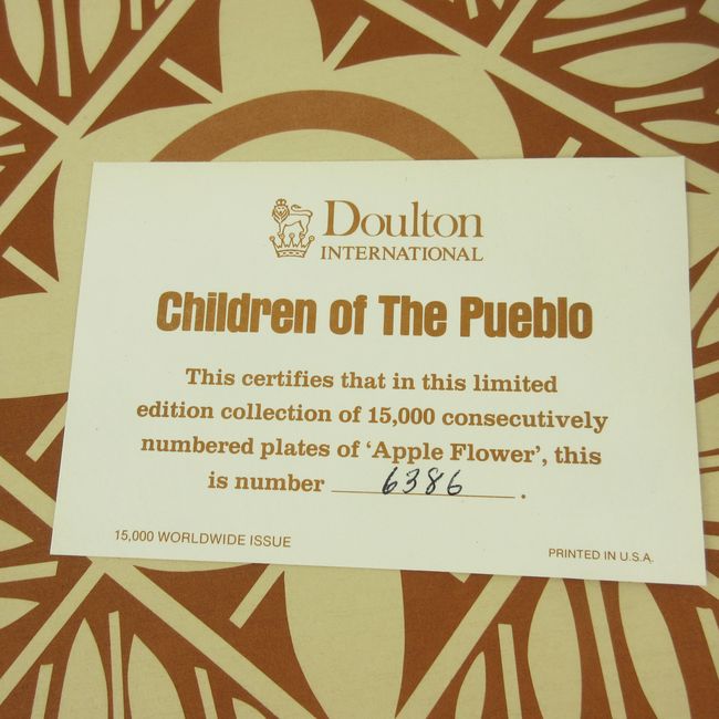 Current Bid: $[Refresh Price]YOU WILL NEED TO REFRESH THIS PAGE TO SEE UPDATED BID (Log in and this will update automatically) You must LOG IN or REGISTER to see this full page auction listing and bid. Auction is Over Winning Bid Amount: $This item did not sell **Lot Details: (LOT: F172) - Collector plate from Doulton International. First plate in the Children of the Pueblo Collection. This plate is titled Apple Flower. It is number 6386 of 15,000. Made in 1983. Comes in original packaging with certificate. The box h Log in to add this lot to your watch list or place a bid |