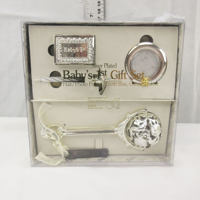 Current Bid: $5.00 [Refresh Price]YOU WILL NEED TO REFRESH THIS PAGE TO SEE UPDATED BID (Log in and this will update automatically) You must LOG IN or REGISTER to see this full page auction listing and bid. Auction is Over Winning Bid Amount: $5.00 **Lot Details: (LOT: F180) - Vintage Silver plated Babys 1st gift set. Rattle, Hair/photo frmae, tooth box and candle holder. Precious moments collection babys Baptism photo frame and sending you a rainbow precious moments ornament. Log in to add this lot to your watch list or place a bid |