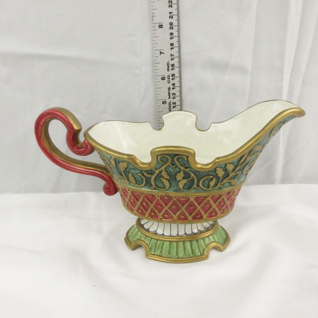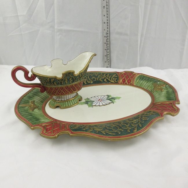Current Bid: $13.00 [Refresh Price]YOU WILL NEED TO REFRESH THIS PAGE TO SEE UPDATED BID (Log in and this will update automatically) You must LOG IN or REGISTER to see this full page auction listing and bid. Auction is Over Winning Bid Amount: $13.00 **Lot Details: (LOT: F187) - Beautiful Fitz and Floyd Classics large platter. 19``x15`` and Matching Fitz and Floyd Classics gravy boat. Excellent condition. Log in to add this lot to your watch list or place a bid |