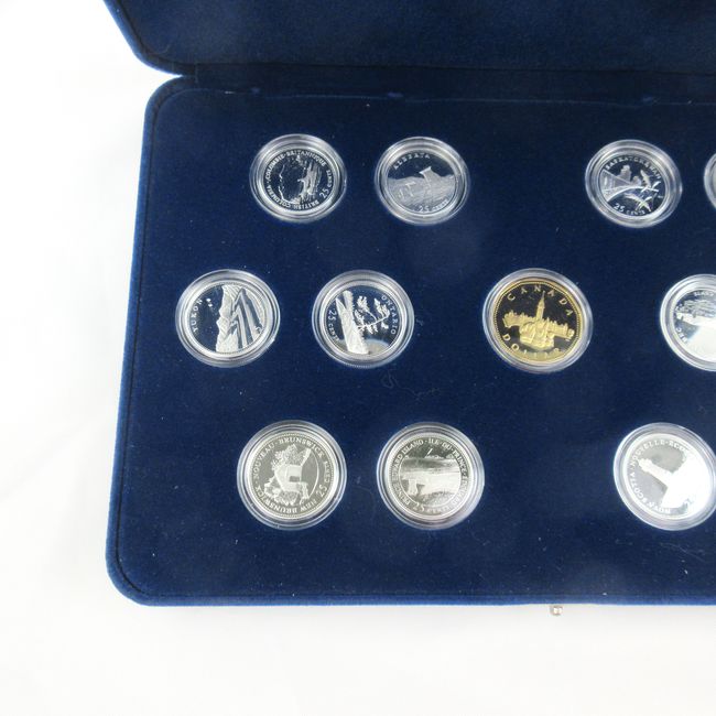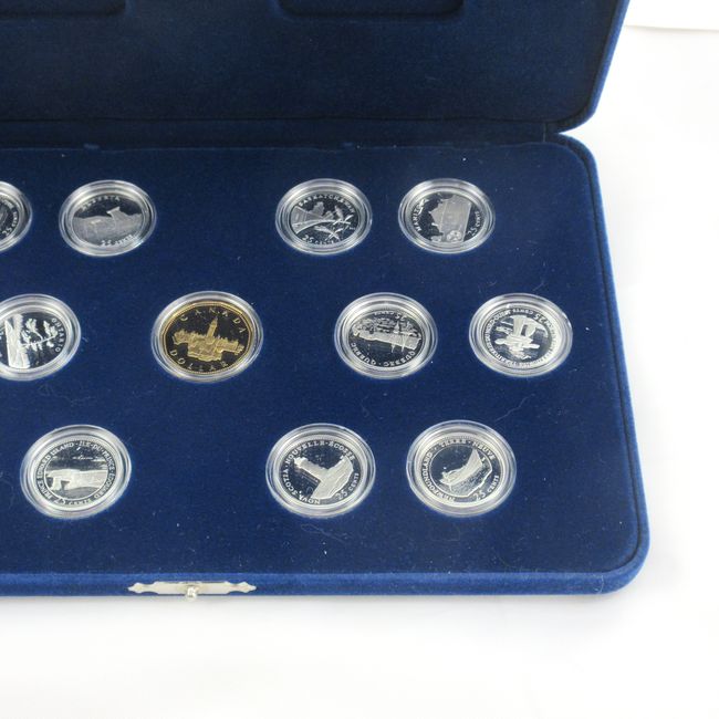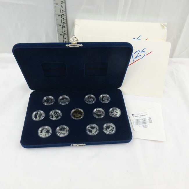 Current Bid: $40.00 [Refresh Price]YOU WILL NEED TO REFRESH THIS PAGE TO SEE UPDATED BID (Log in and this will update automatically) You must LOG IN or REGISTER to see this full page auction listing and bid. Auction is Over Winning Bid Amount: $40.00 **Lot Details: (LOT: F195) - The 125th Anniversary Mint Set of coins of each province, plus the Canadian Dollar. Includes 13 enhancement cards to accompany each coin and an aperture to store them in the case. Cardboard sleeve is slightly damaged from storage, but Log in to add this lot to your watch list or place a bid |