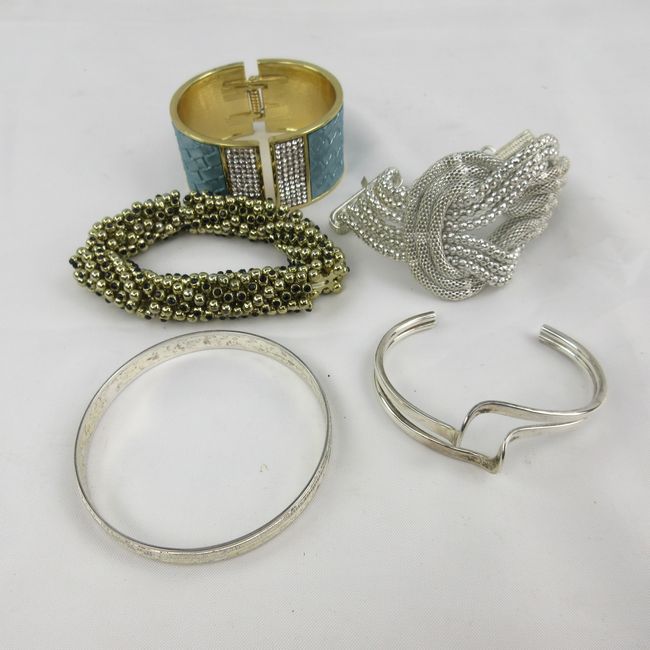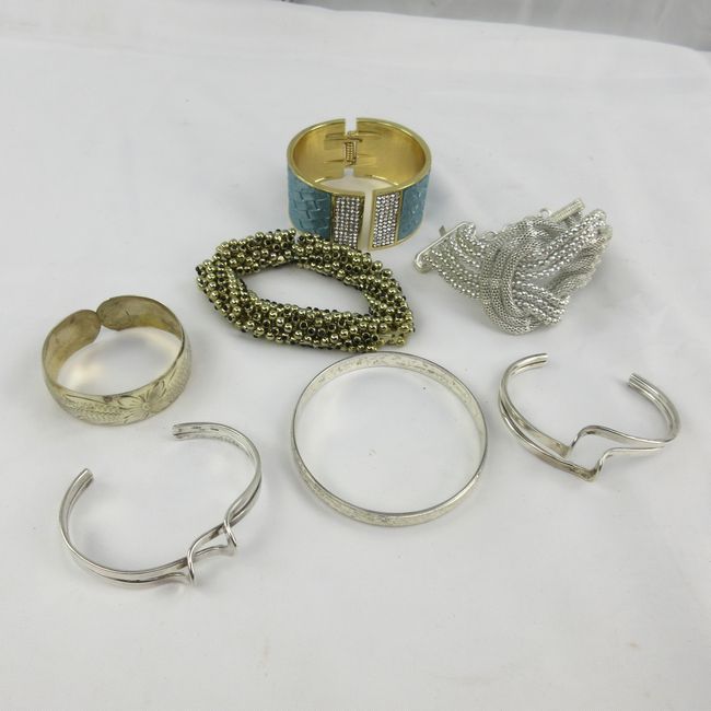 Current Bid: $31.00 [Refresh Price]YOU WILL NEED TO REFRESH THIS PAGE TO SEE UPDATED BID (Log in and this will update automatically) You must LOG IN or REGISTER to see this full page auction listing and bid. Auction is Over Winning Bid Amount: $31.00 **Lot Details: (LOT: F223) - Seven assorted bracelets. Two of the bracelets are marked sterling silver (another one has no mark and it could be silver) while the other four are “costume” pieces. All of them are in in excellent condition! Log in to add this lot to your watch list or place a bid |